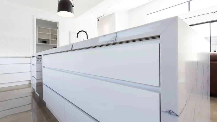 Mitered edges are created by fusing together two different pieces cut at 45-degree angles for a substantial countertop slab that looks like a seamless 90-degree edge. It’s not the same as a square edge, although they do bear a strong resemblance to each other, especially at first glance.